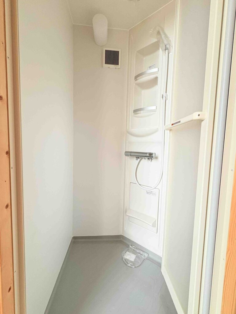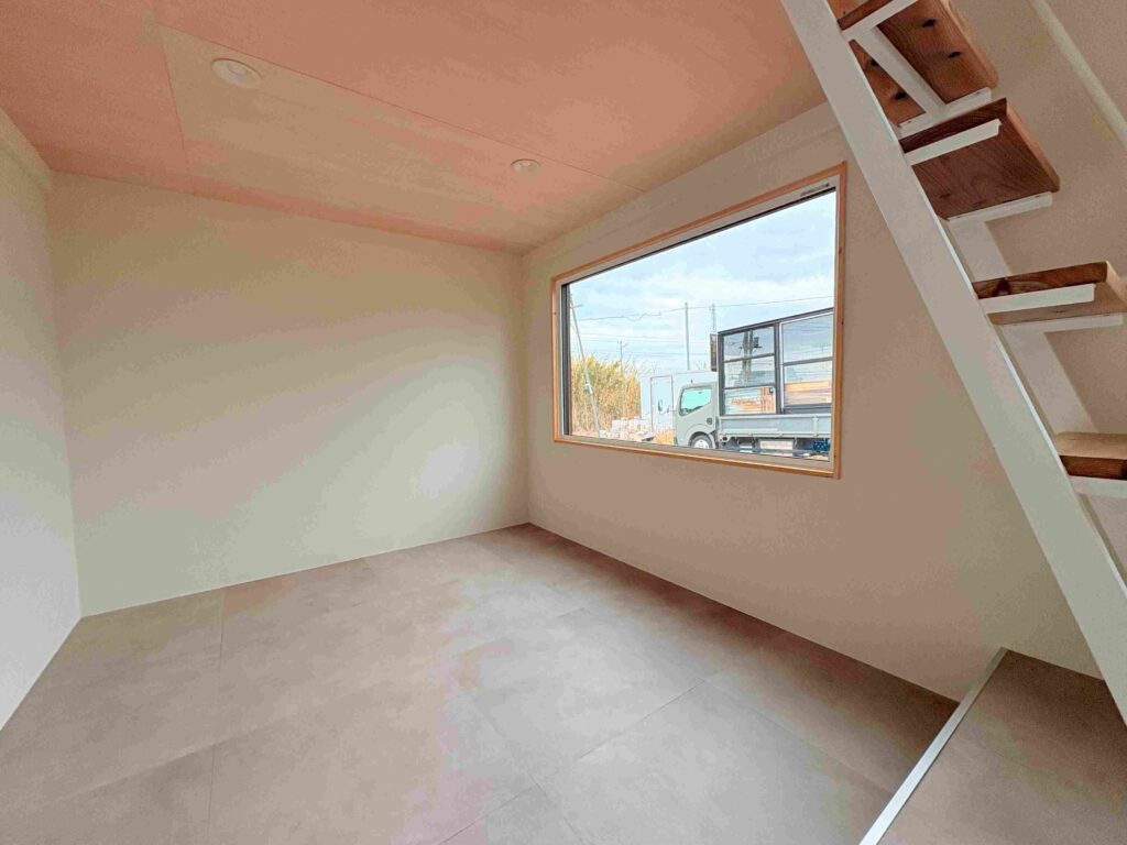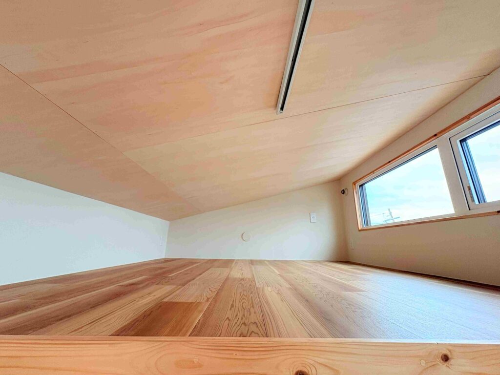 設備も充実しており、ミニキッチン、トイレ、シャワーブースを完備。さらに、一段下がったフロア設計により、ロフト下でも大人がしっかり立てる広々とした空間を確保しています。