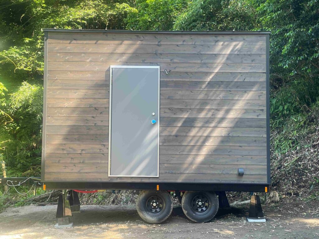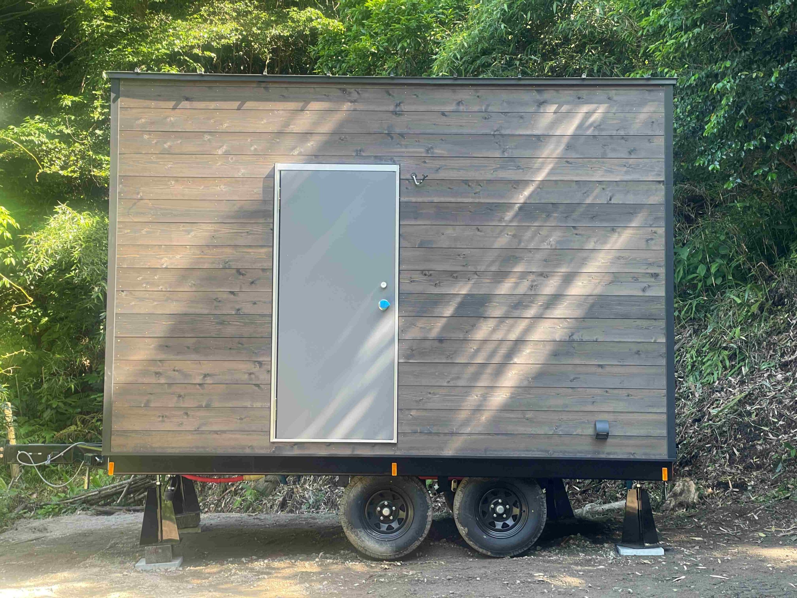 未使用の新古車トレーラーハウスですが登場しました!トイレ2つ、シャワー、洗面、ストックヤード、給湯器を完備。