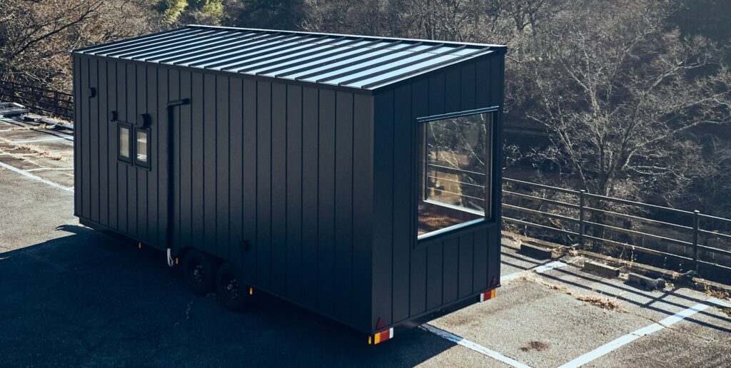 「Roof-1」は金属屋根に特殊加工した太陽光セルを組み込むことで、見た目が普通の屋根と変わらない一体感のあるデザインを実現。トレーラーハウスの外観を損なうことなく、太陽光発電の利便性を提供します。