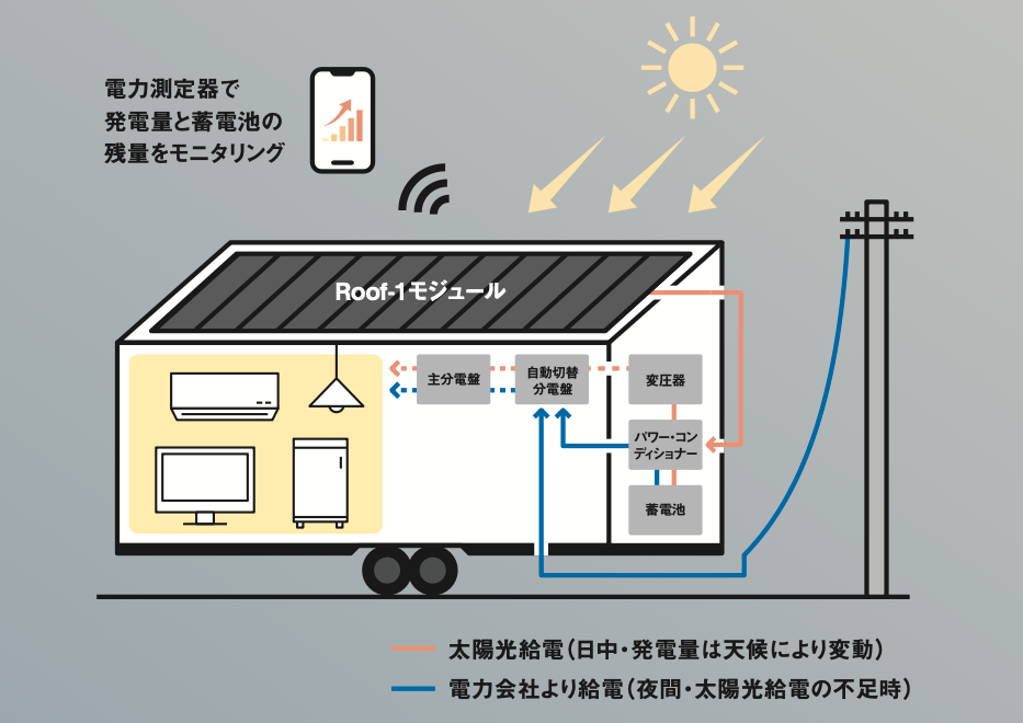 太陽光パネルを搭載。 設置場所やインフラに縛られない快適な暮らしを実現します