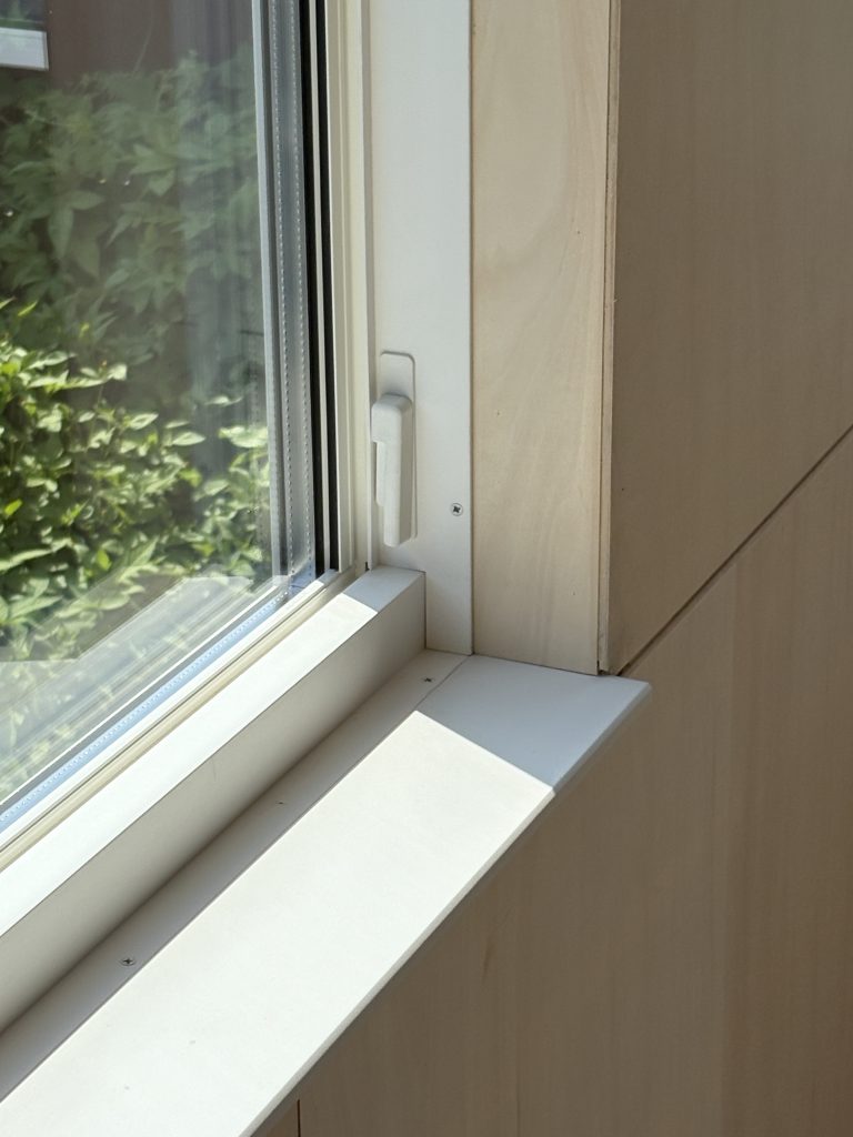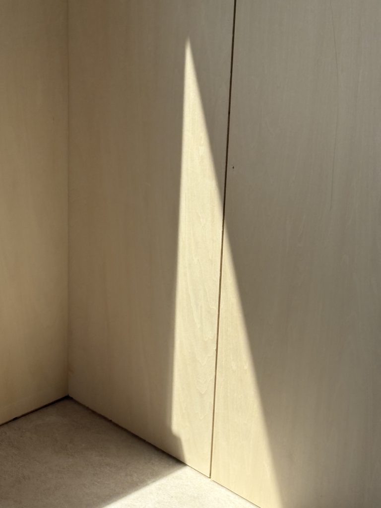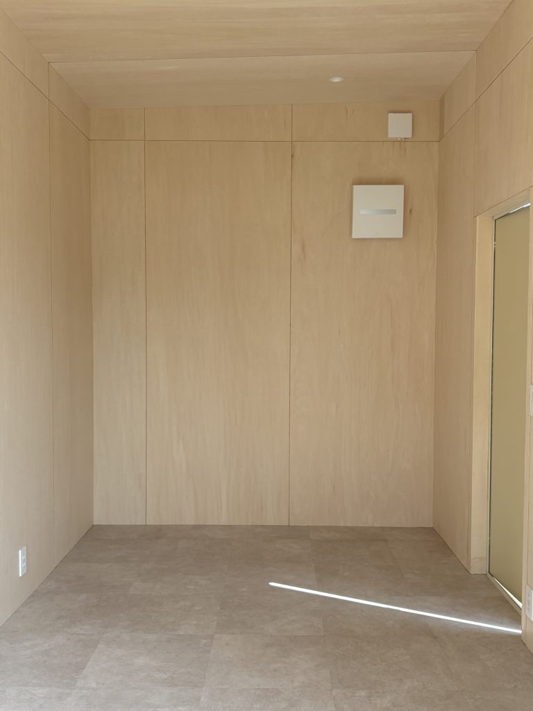 室内はシナ合板の目地張り仕上げに。シンプルさの中に温もりを感じられるデザインです。