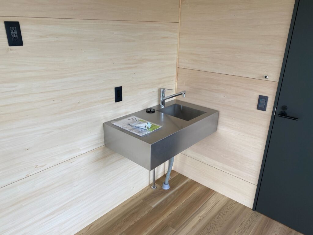 水洗トイレ、シャワー、ミニシンクが標準搭載されているため、設置後すぐに利用を開始できます。