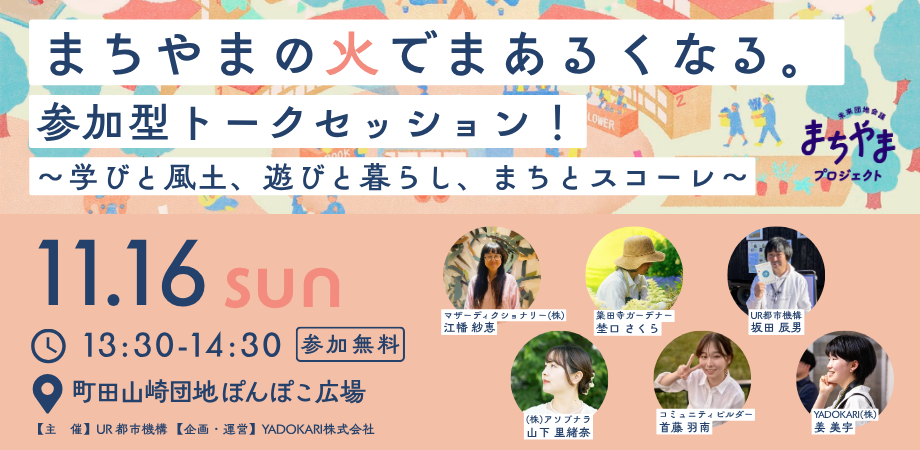 また、11月15日(土)にも、同日開催される地域イベント内の一部コンテンツとして、まちやまプロジェクトにまつわる企画や出展がございます。ぜひ両日あわせてお楽しみください!