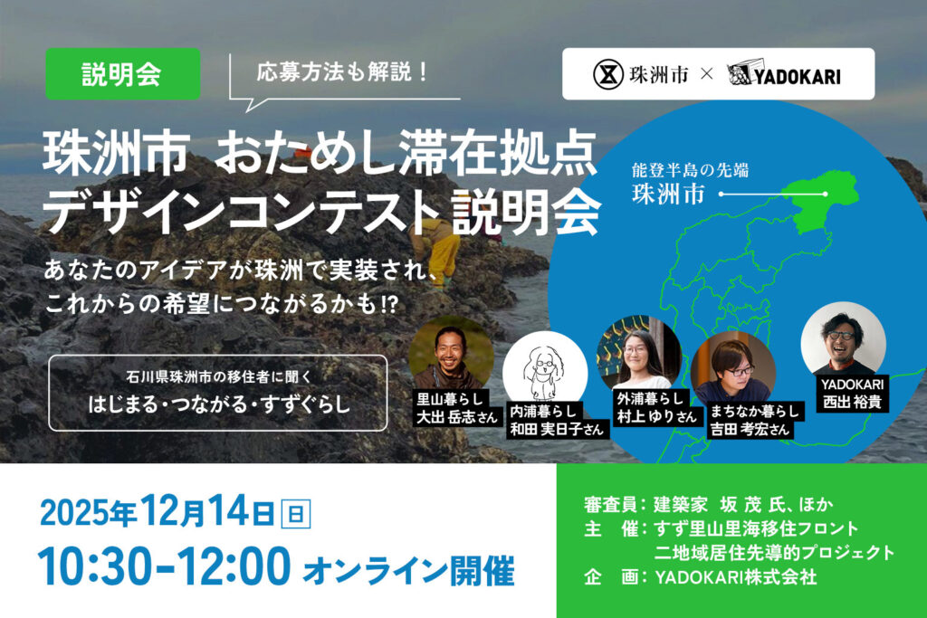 \珠洲市 おためし滞在拠点デザインコンテスト 説明会/能登半島の最先端 石川県珠洲市の移住者に聞く はじまる・つながる・すずぐらし