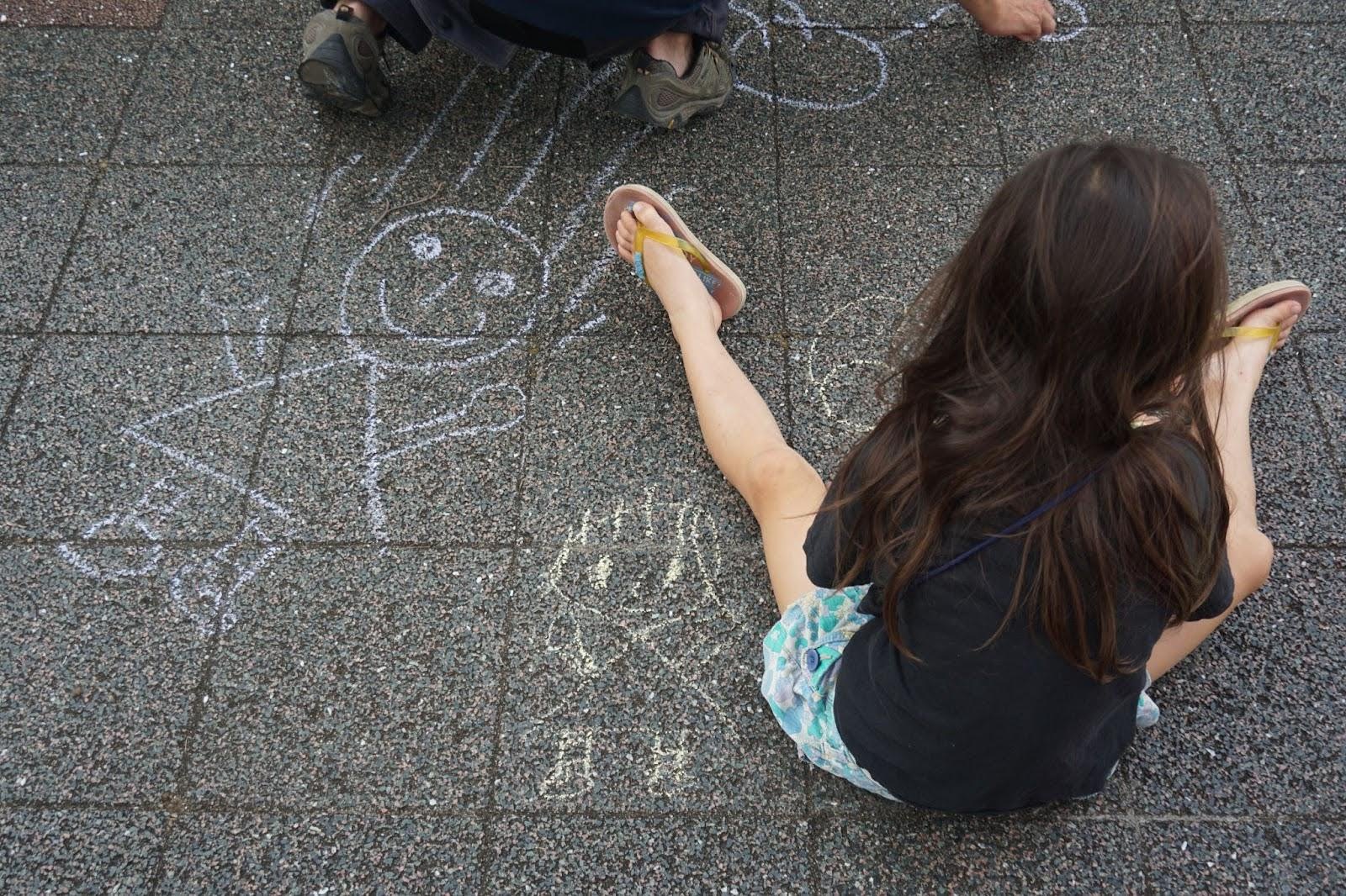 当日は学校の教室に置いてあるくらいの細いものから、みたことがないくらい太いものまで、いろいろな大きさのチョークをご用意します。思う存分、ラクガキを広げてみてください!