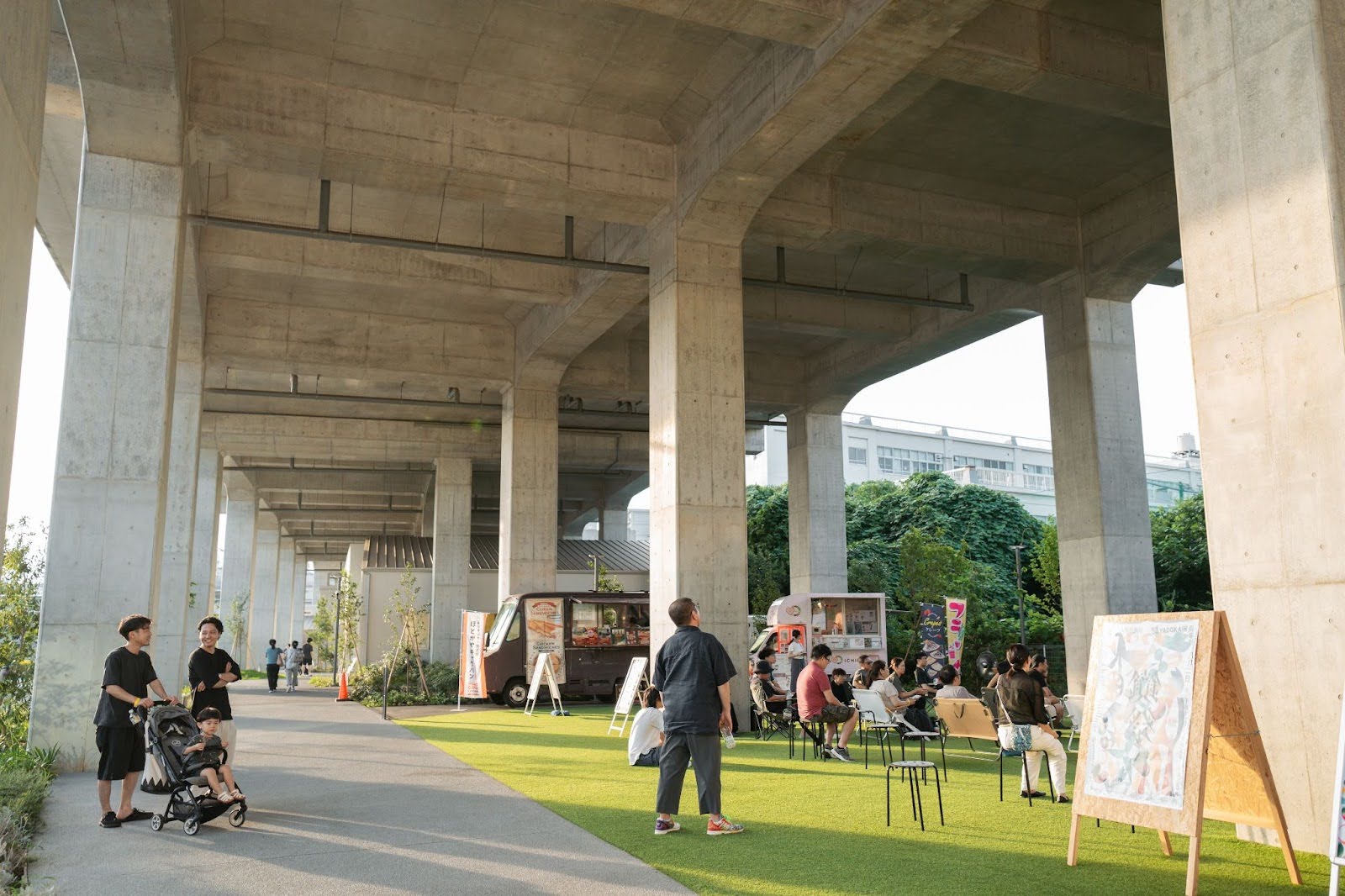 2度目となる今回は、YADOKARIがエリアブランディングを手がける高架下の複合施設「星天qlay」が舞台。YADOKARIのオフィスであるBゾーンの qlaytion galleryから、Cゾーンの芝生広場、Dゾーンの自社運営シェアハウス「YADORESI」 まで、施設全体を使っての開催です。