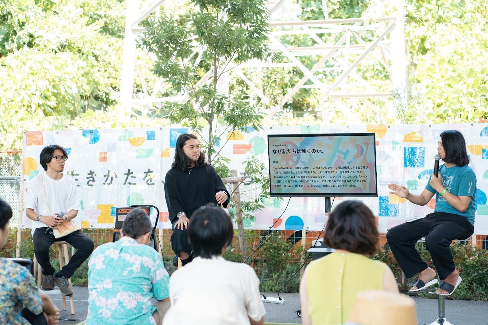 暑さの中にも爽やかな風が吹き抜ける芝生広場では、5つのトークセッションと多彩な企画が展開。ゲストを迎え、多くのYADOKARIメンバーが登壇し、熱のこもった対話が繰り広げられました。