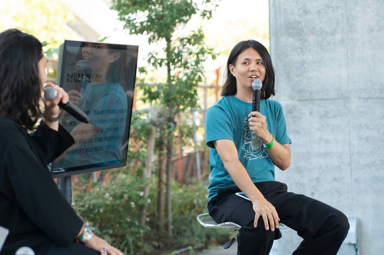 最後のトークセッションは、芝生広場にて「日本仕事百貨」のナカムラケンタさんを迎えて。型に縛られず、新たな採用や働き方のカタチを耕し続けるナカムラさんと共に、自分らしい働き方をデザインする力や、それを受けとめる組織のあり方についてのディスカッションが行われました。ナカムラさん自身の失敗談も交えながら、働き方の本質に迫ります。