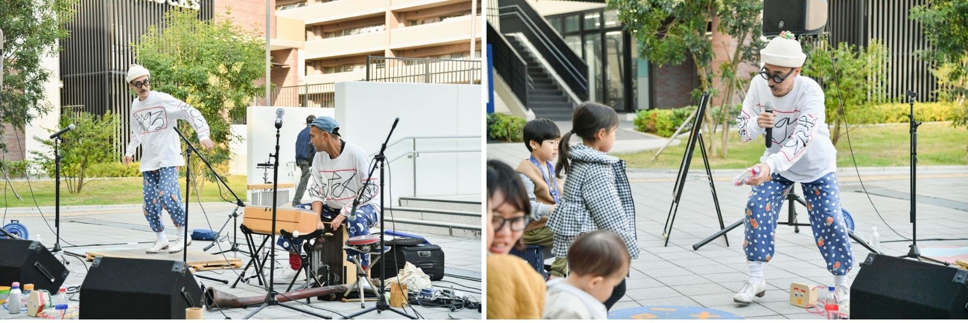 その後ふたりは、BゾーンからEゾーンへと練り歩きながらパフォーマンスを披露。まちと音楽、そして行き交う人が一体となり、星天qlay全体をつなぐ存在となっていました。