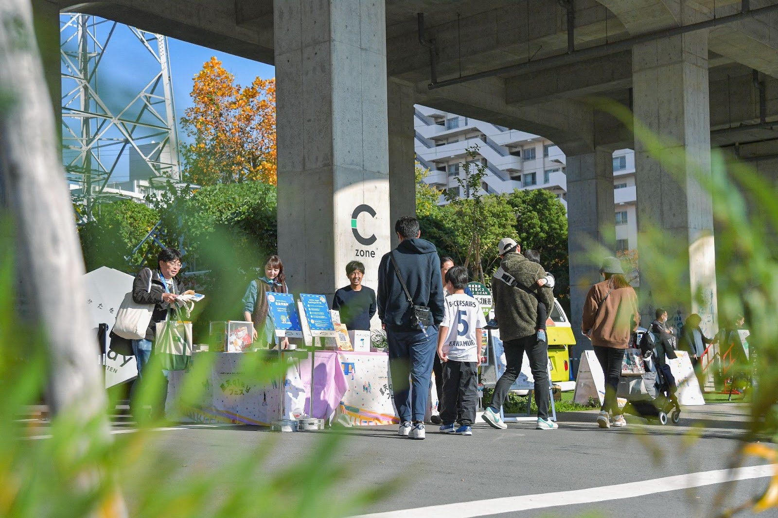 パークマルシェでのにぎわいは芝生広場の周辺にとどまらず、Cゾーンの店先へと自然につながっていきました。