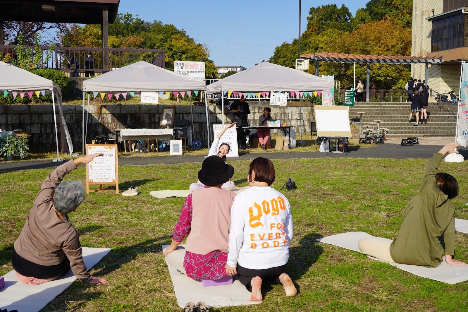 まちやままるごとスコーレvol.5、一日目は青空ヨガや体験マルシェを中心に、ゆっくりと自分の癒しを探せる時間となりました。