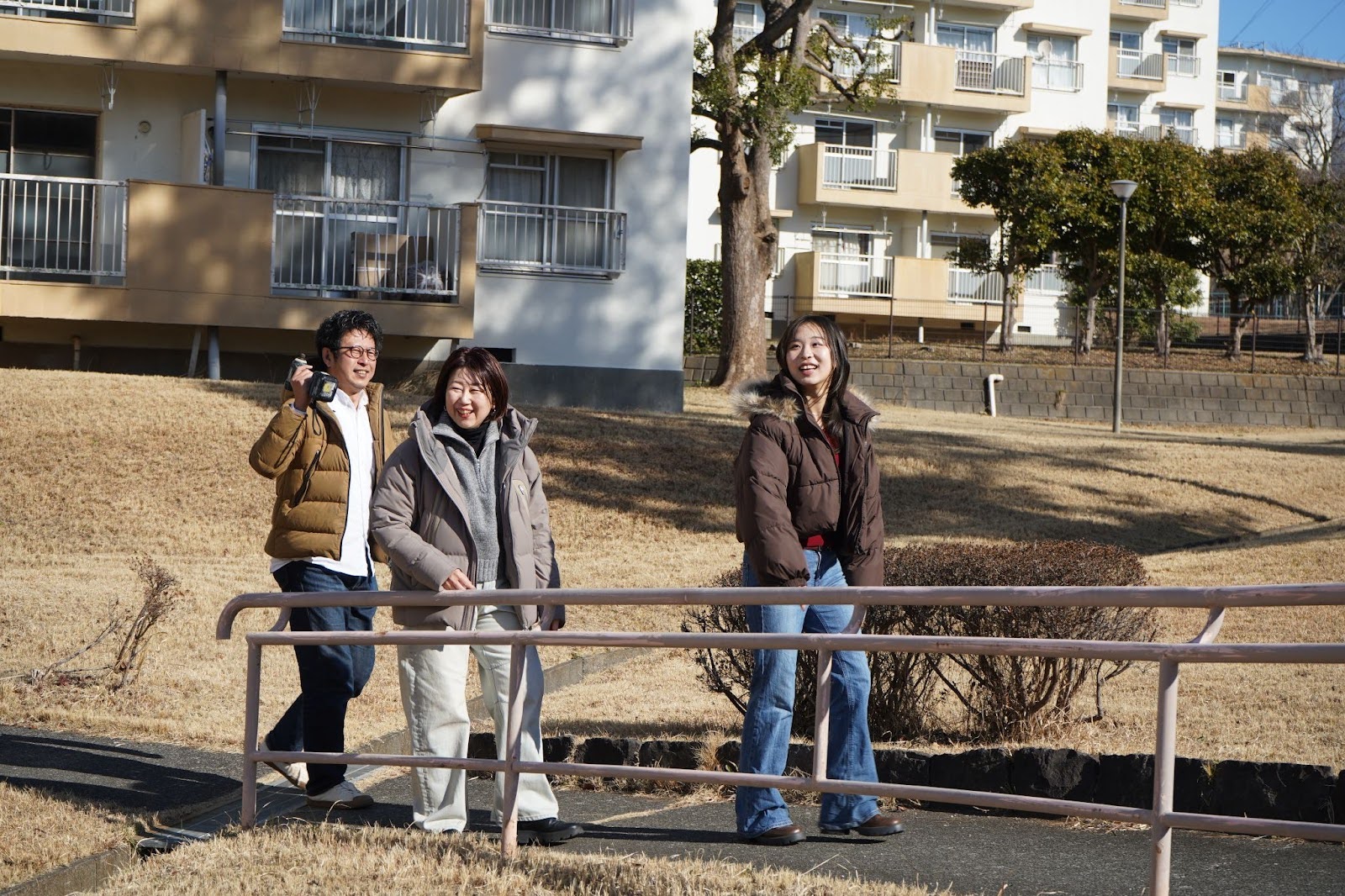 そのプロジェクトの一環として、団地や町田にまつわる取り組みをしている方のインタビューを発信しています。今回は、2025年にスタートした「未来団地会議」という、山崎団地のにぎわいを育てるコミュニティで活動中の3名にお話を伺いました。