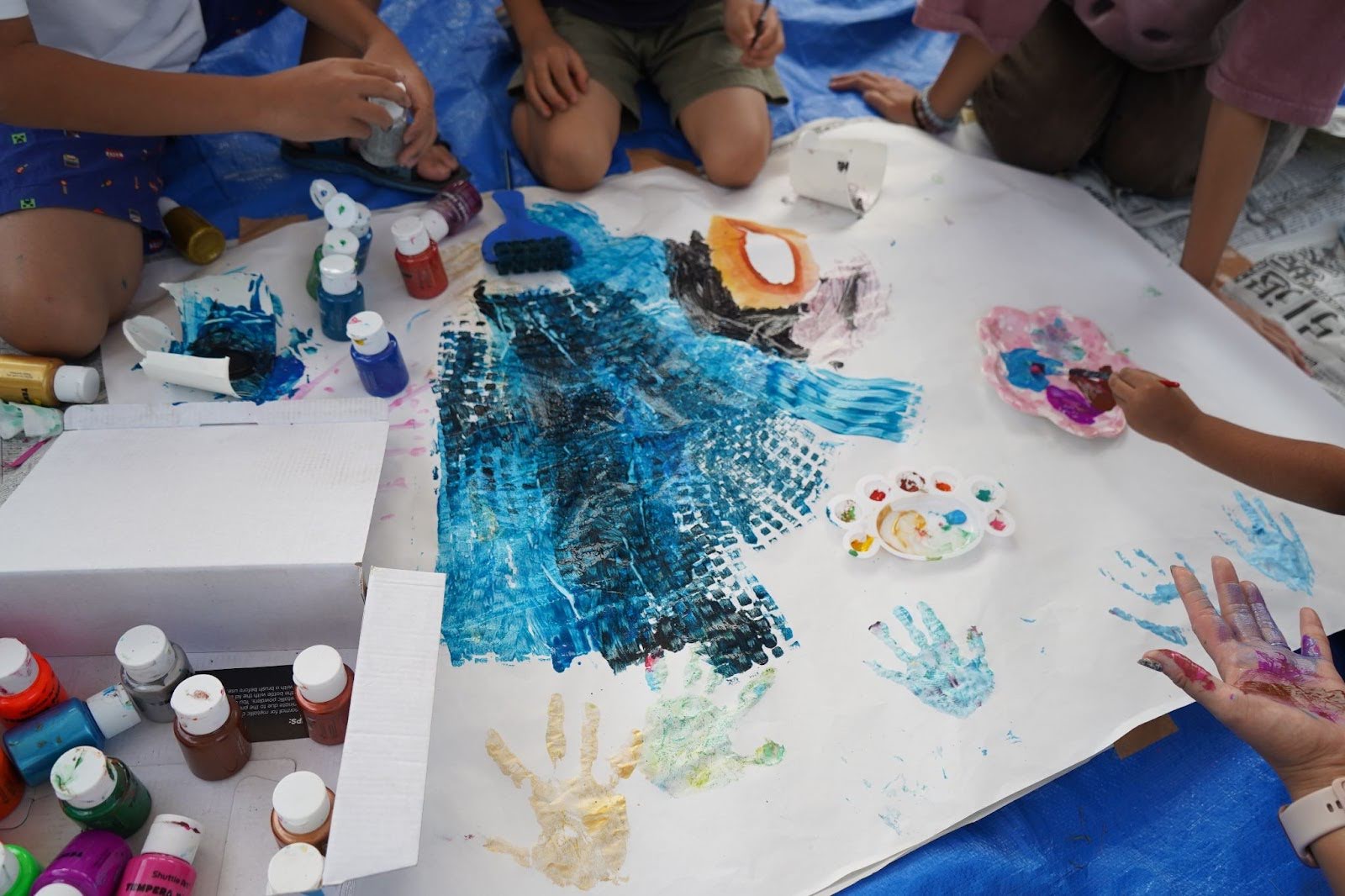 子ども向けのワークショップをしようと方向性が決まった後に、子どもの発達段階に合わせた内容がいいかなと思いました。教職や学芸員の授業で学んだことや、メンバーの意見も合わせていって、まずは誰でも挑戦できるフィンガーペインティングをやってみることにしました。