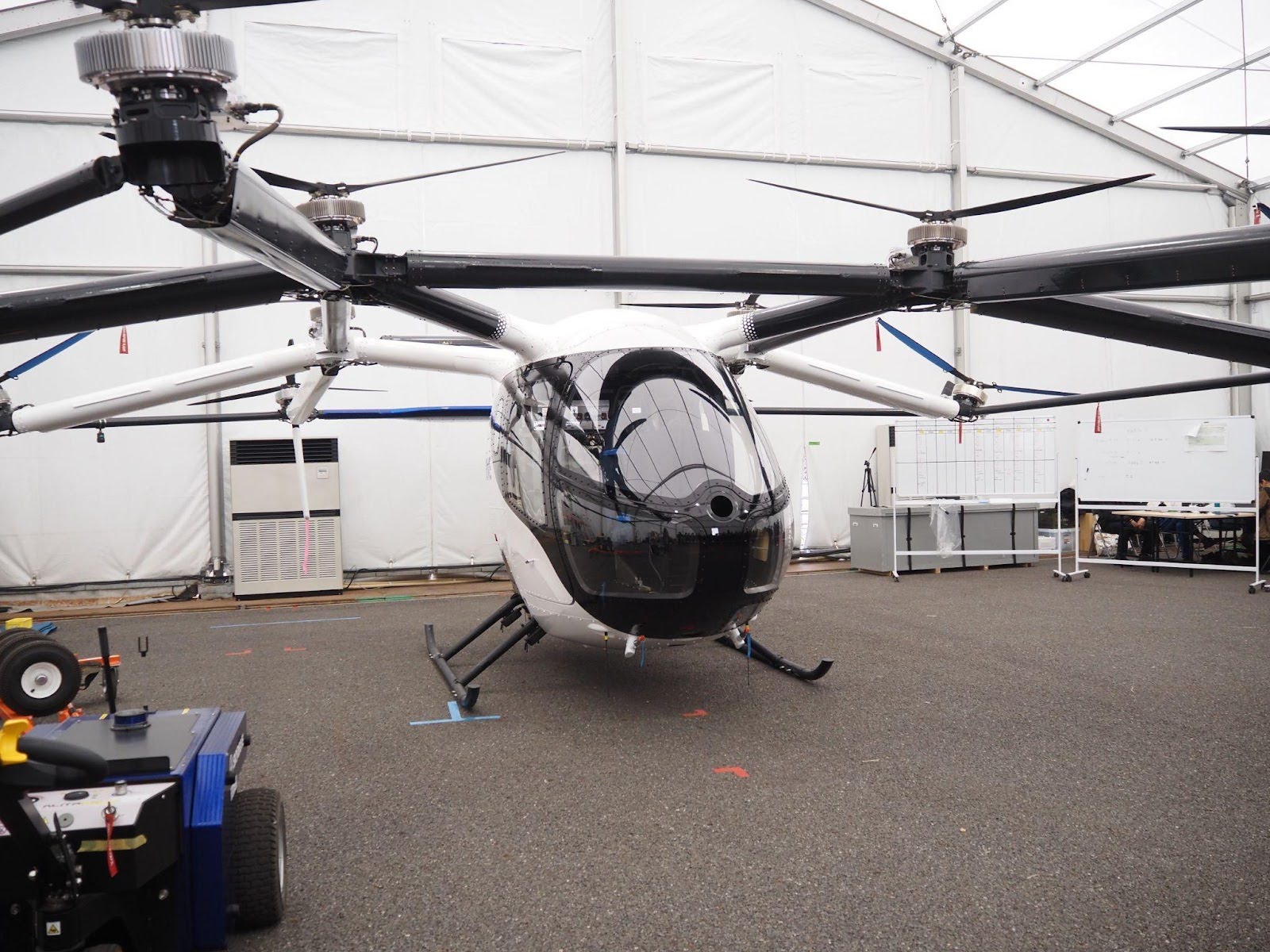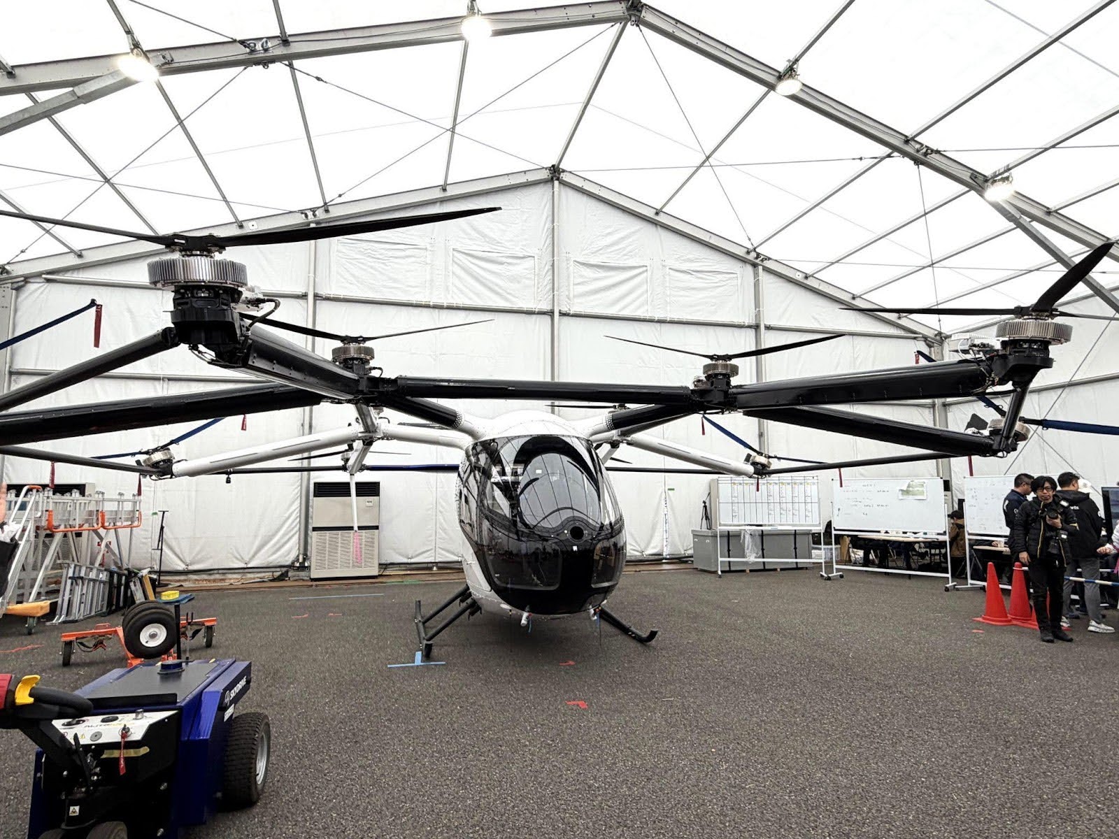 会場に着いて最初に案内していただいたのは、空飛ぶクルマの機体が置かれているエリア。