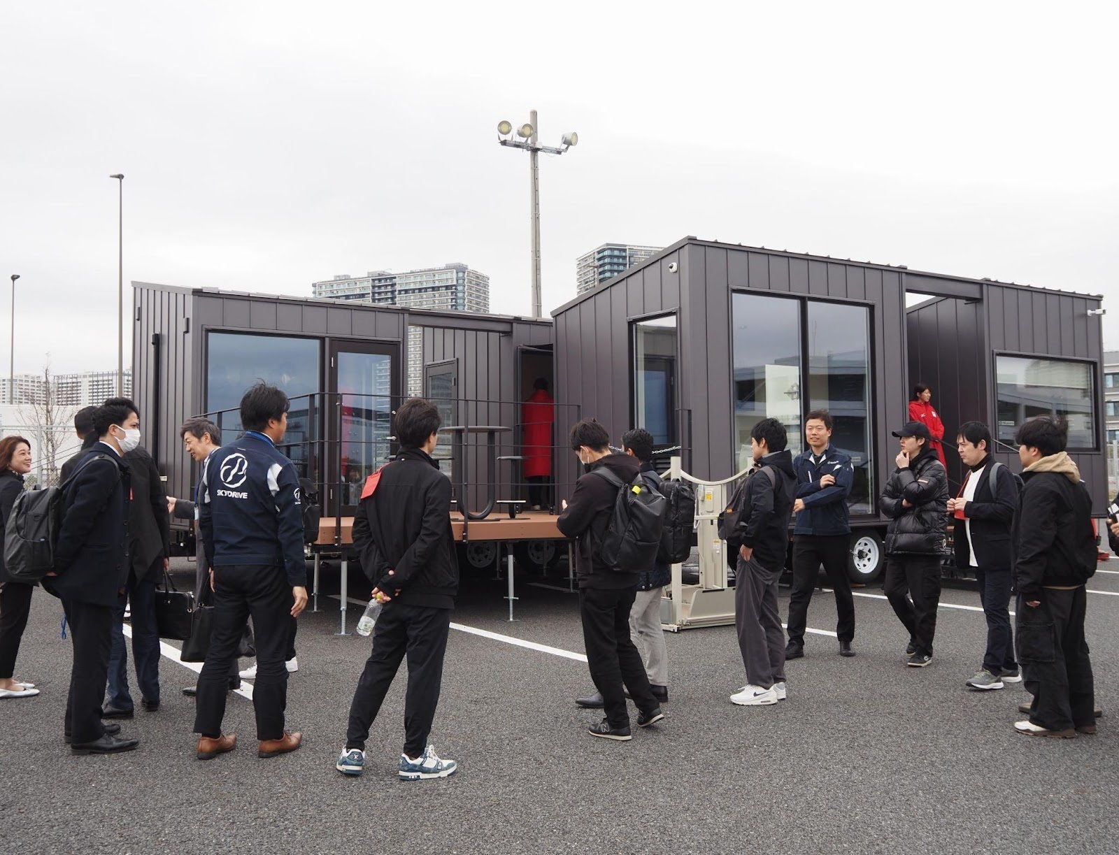 今回は、可動性や柔軟性だけでなく、デザイン性や運用性まで含めてしっかり成立していたことも印象的でした。未来の移動を支える「空の玄関口」として、YADOKARIのトレーラーハウスが新しいモビリティ社会の実証の現場で活用されている。その場に立ち会えたことを、とても嬉しく感じた訪問となりました。