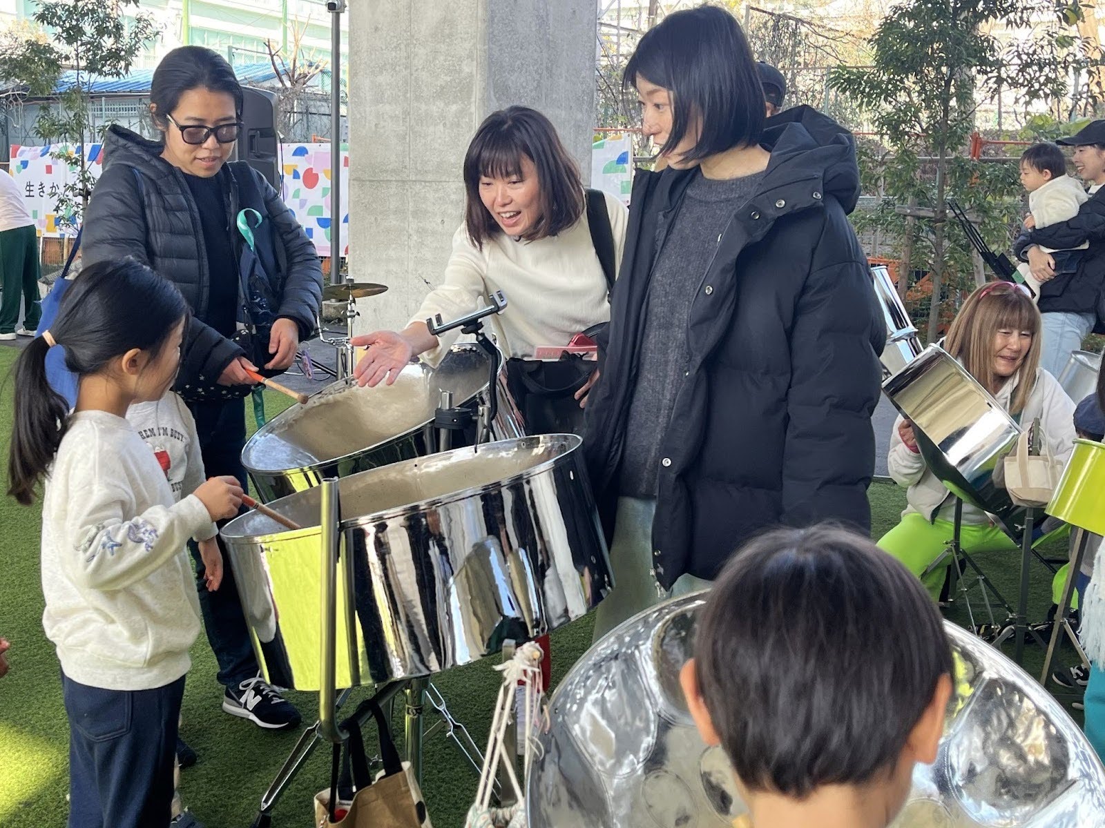 演奏のあとは、スティールパンの体験会も開催。たくさんの子どもたちが集まり、最後にはみんなできらきら星を演奏しました。