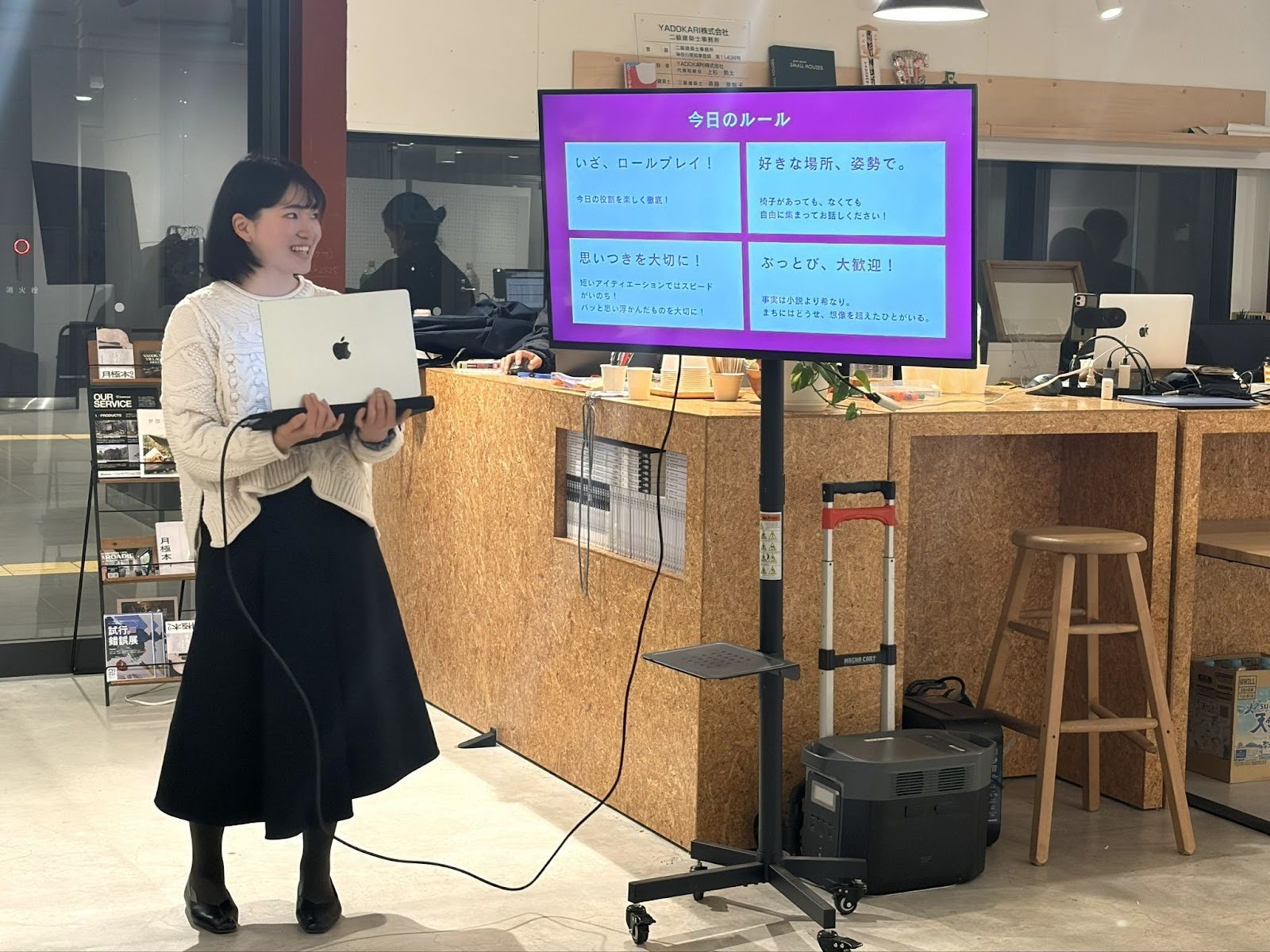 今回のファシリテーターを務めたのは、YADOKARIの姜(かん)さん。銀行員からキャリアをスタートし、その後まちづくりの領域へ。現在は地域の活性化やコミュニティビルディングなどのプロジェクトに携わっています。