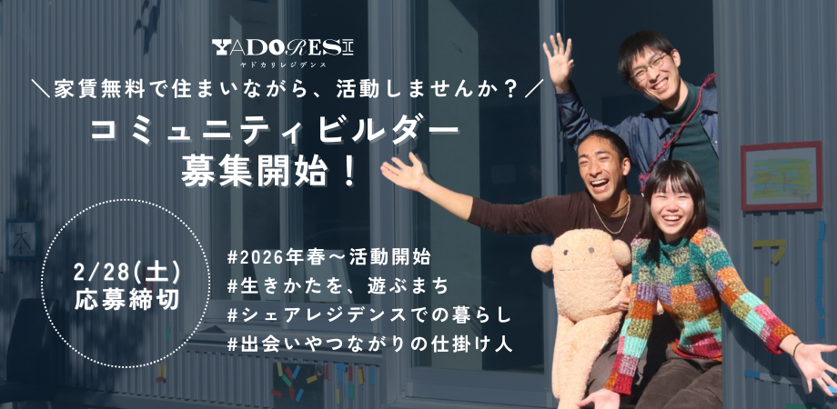YADOKARI運営シェアハウス「YADORESI」に住まいながらまちづくりを推進するコミュニティビルダー募集!(2026年月春 より随時活動開始)
