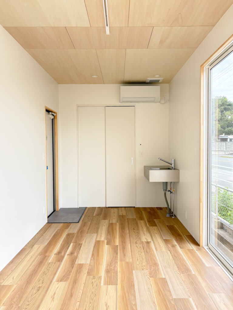 壁:塗装仕上げ 天井:シナ合板 素地仕上げ