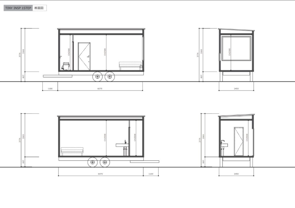 Tinys INSPIRATIONは、暮らしに欠かせない水洗トイレ、シャワー、ミニキッチンの水回り付きタイプもご用意。