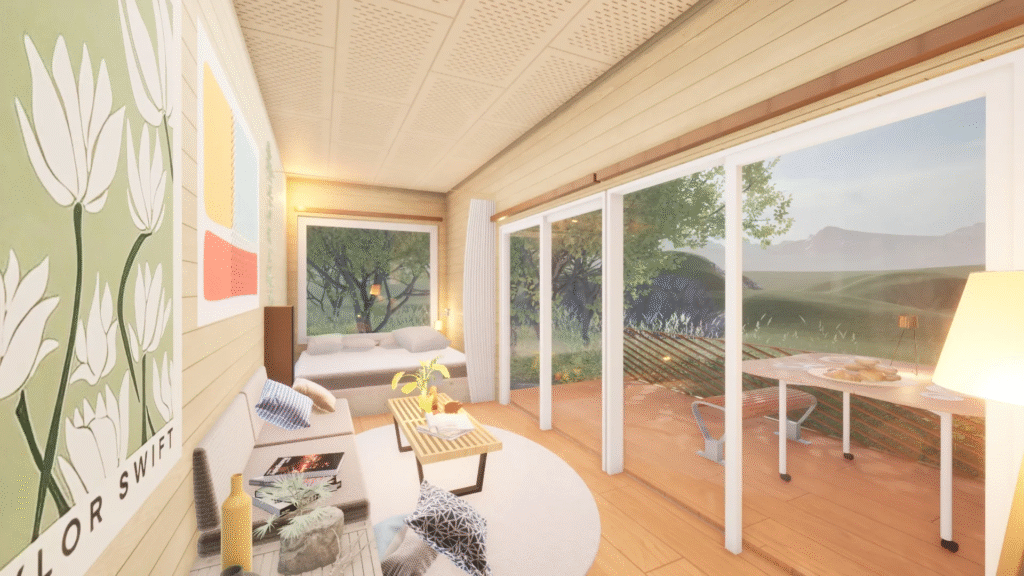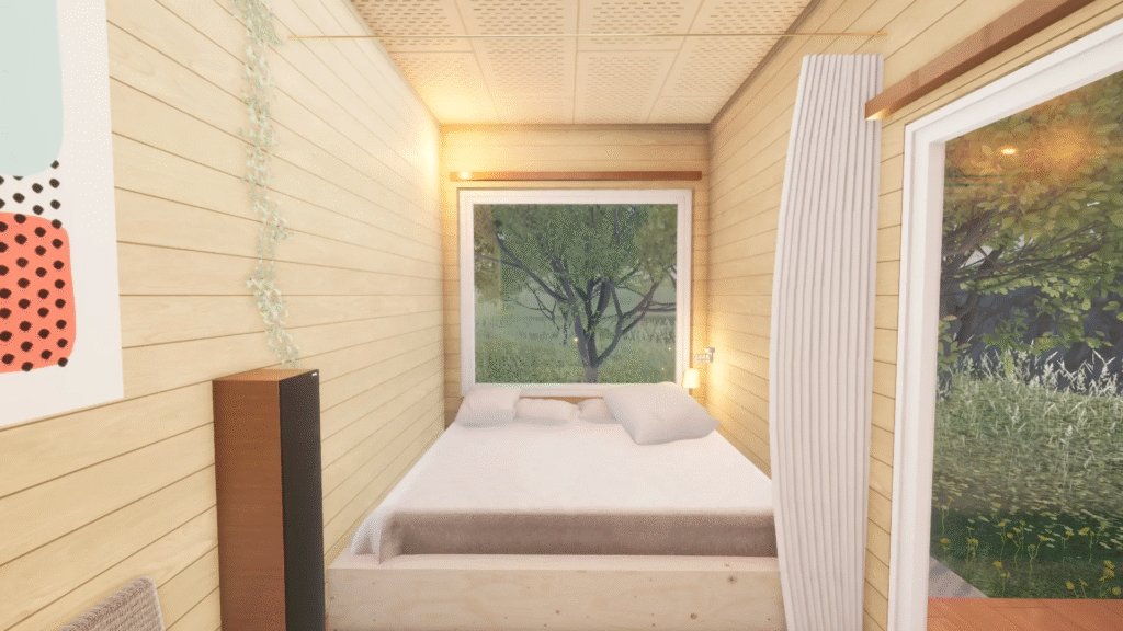 20ftサイズも宿泊施設や別荘として多くの方にお選びいただきましたが、「より快適にゆったりとトレーラーハウスの中で過ごしたい!」というお声や、「大型のトレーラーハウスでもっと多くの人に泊まっていただきたい」というお声をいただき、20ftサイズ(L6m×W2.5m/8畳)から30ftサイズ(L9m×W2.5m/12.5畳)にサイズUPしたロングタイプのトレーラーハウスを作りました。