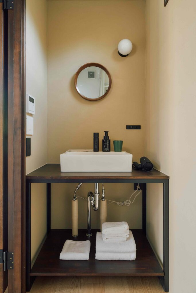 ミニキッチン、シャワー、洗面台、トイレを完備し、屋外には前庭も併設。プライベートな空間でありながら、自然とのつながりを感じながらお過ごしいただけます。